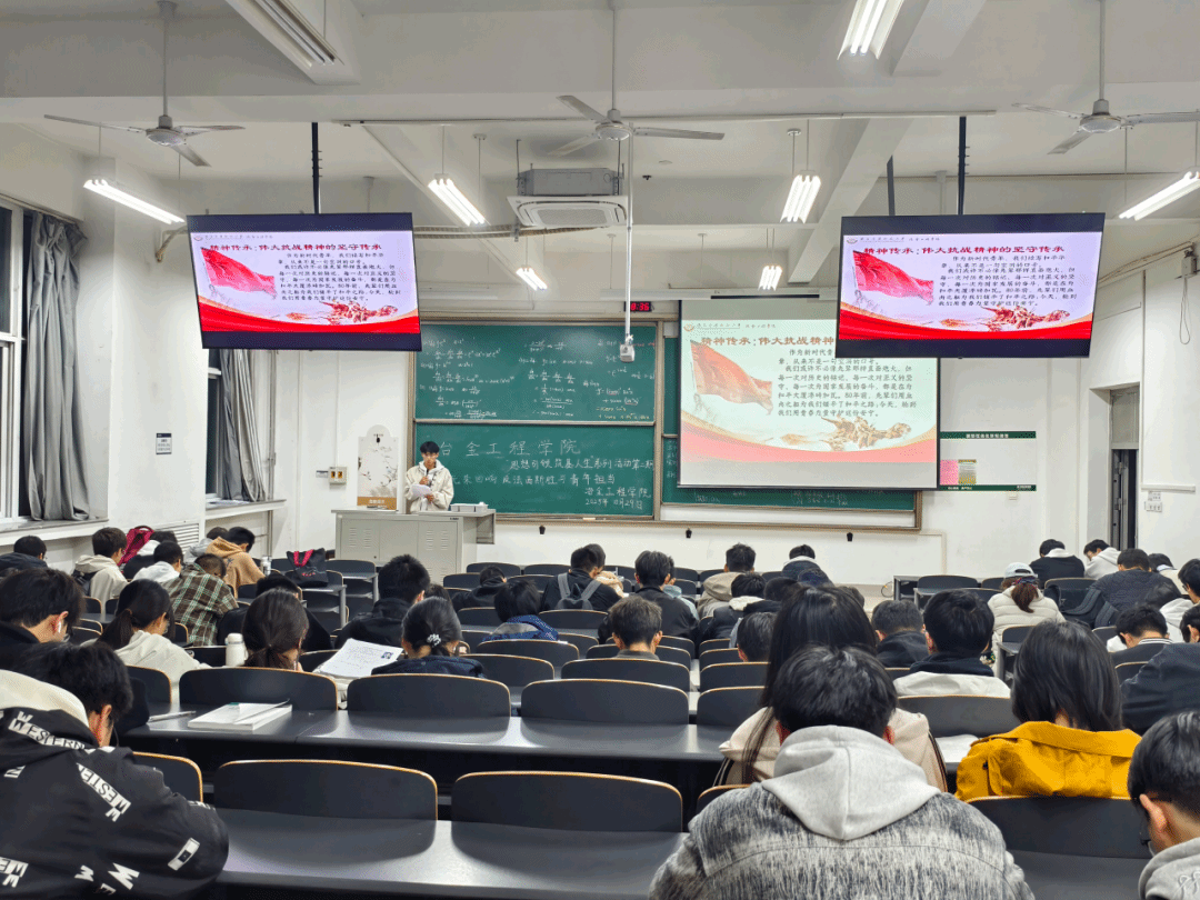活动伊始,主持人带领全体同学观看反法西斯主题纪录片。荧幕上的血泪画面,将大家带回那段山河破碎、浴血抗争的岁月。通过影像资料,同学们不仅系统学习了反法西斯抗战时期的历史脉络,更深刻了解到中国人民在艰苦卓绝的抗战中所付出的巨大牺牲与不懈努力,进一步认识到伟大抗战精神在当下的时代价值。